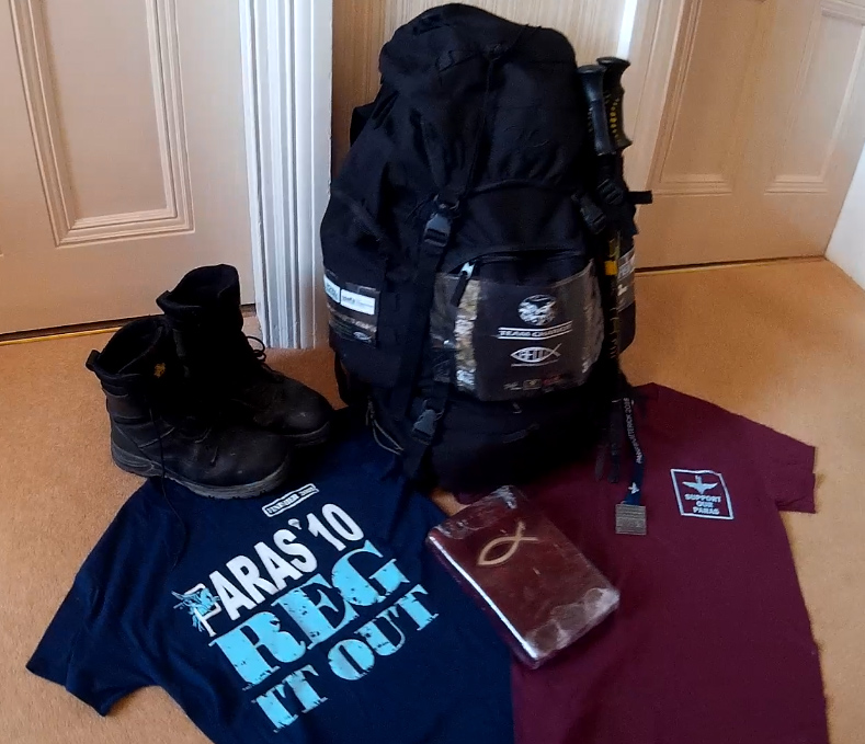 Latest: On 8th November 2020, Team Chariot (Pete Biz) completed another PARAS’10, the Virtual event. With 17kg, in 2.4kg safety work boots, 10 miles were completed including 1200 ft of elevation. Didn’t meet the selection cut-off time of 1:50, (missed by 10 minutes) but the objective was met – to raise the profile of SUPPORT OUR PARAS.